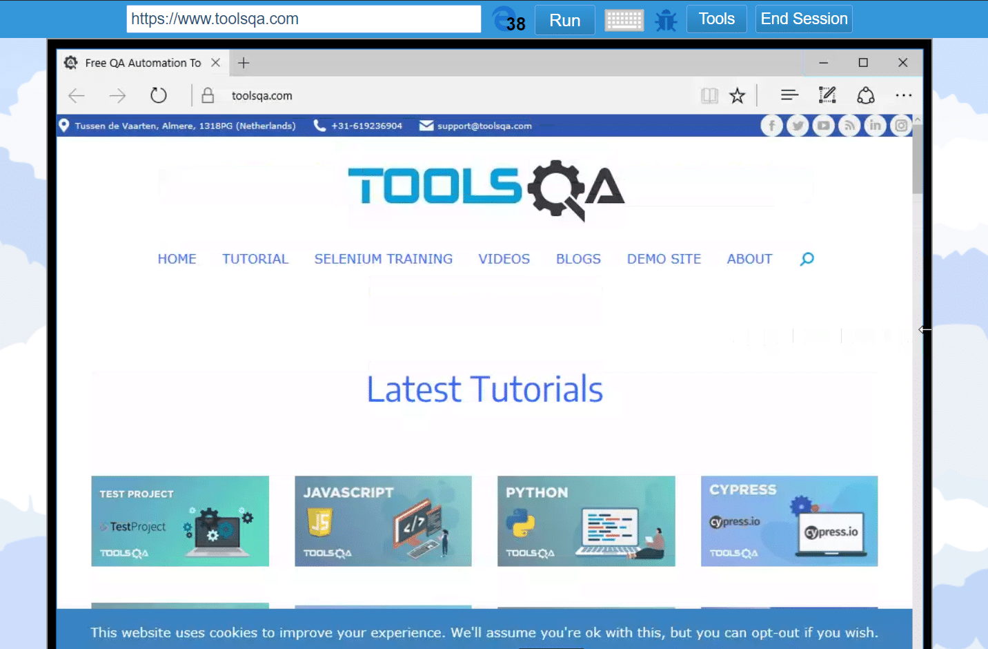 The following image shows ToolsQA running on Windows 10 and the latest Microsoft Edge browser version.