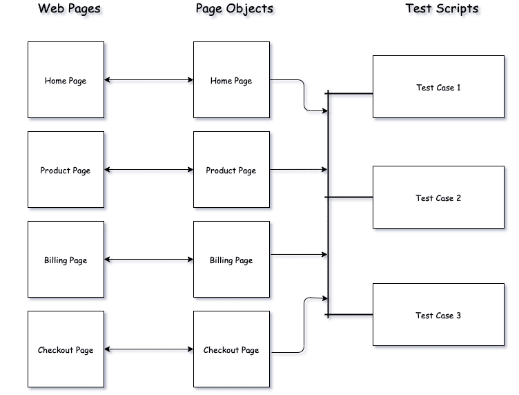 As we can see from the above figure, each of the pages of the web application corresponds to the Page Object in the framework and that Page Object can be invoked in the Test Scripts to perform certain operations on the web page.
