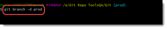 You can go ahead with any branch of your choice; in this part, we will be moving forward with deleting the "prod" branch. For this, execute the following command: