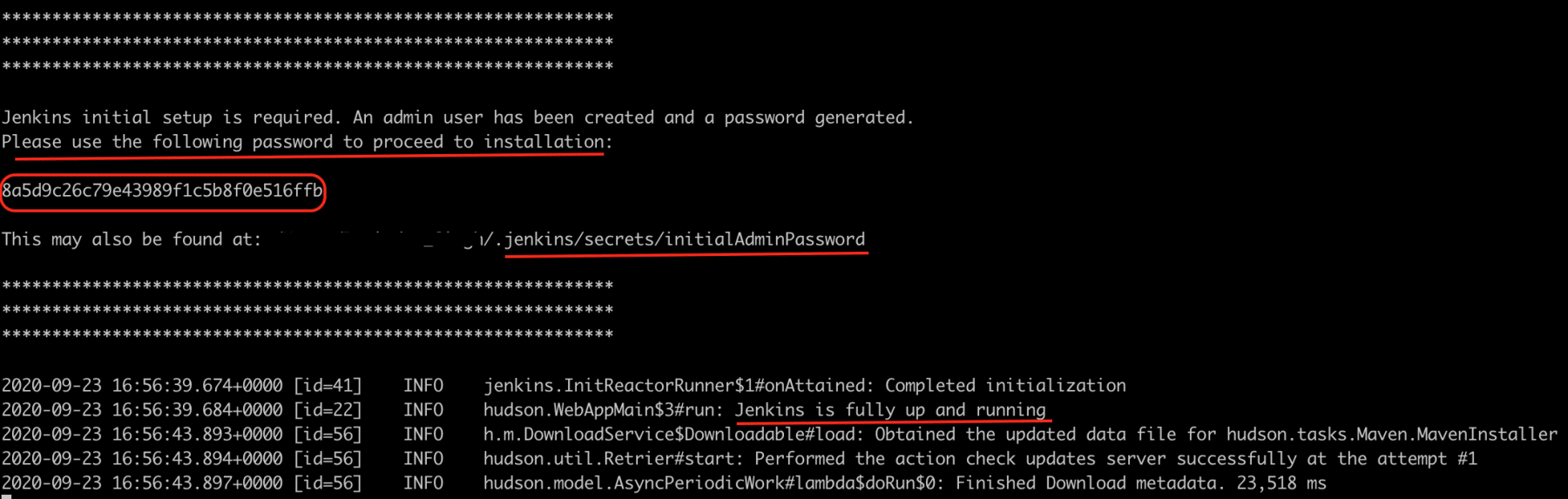 Step 5: Fifthly, after typing the above command, press the Enter key. Wait for some time, and you will see the below screen in which you will get the message like “Jenkins Initial setup is required. An admin user creation completes and a password generates ”.