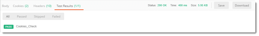 Here we will check if are getting the cookie that we expect or not. In the test tab, write the following test