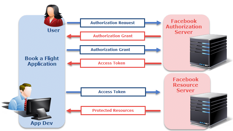 Step 1: Now coming back to the user authorization, when you sign in using the username and password of Facebook, you are asked to allow the permission. This is called as authorization grant. In simple words, grant means agreeing to something. So here we are granting authorization over Facebook to give the required details to the third party App which is Book a Flight in our case.