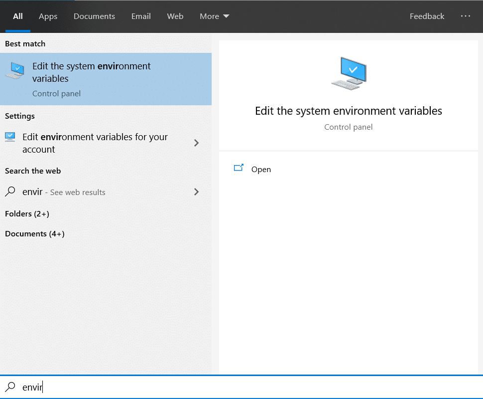 - Second, search for the Edit the system environment variables and open it.