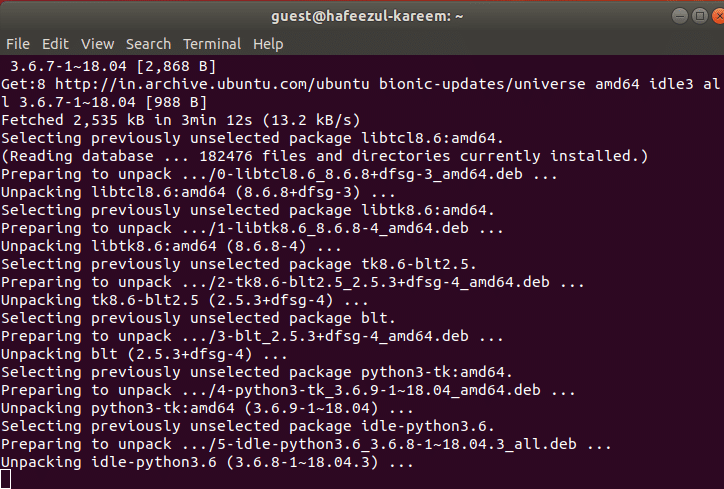 Moreover, if you don't have installed IDLE in your Linux system, then run the following commands to install.