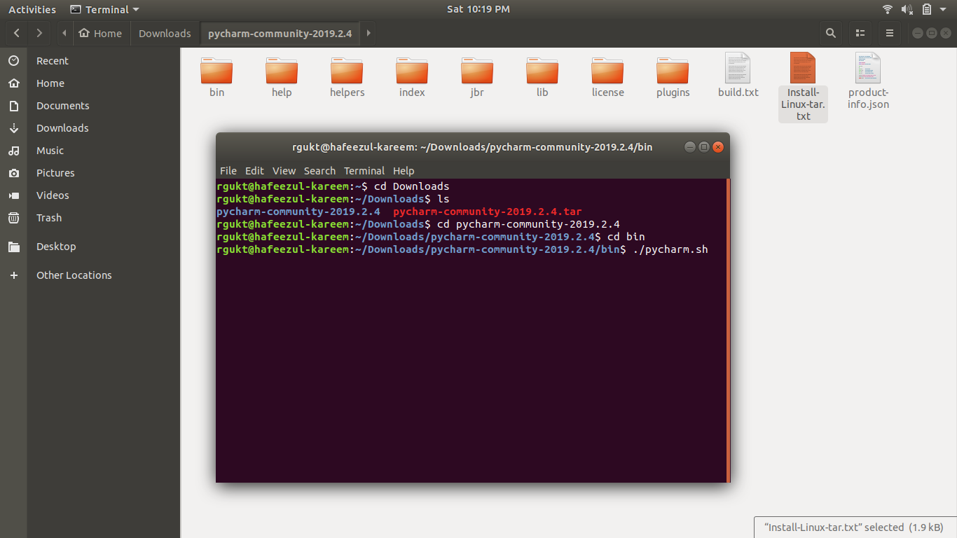 - Open the extracted folder, and you will see a file called Install-Linux-tar.gz.txt. It contains instructions to install the PyCharm. Subsequently, you can follow those instructions or else follow the below steps.