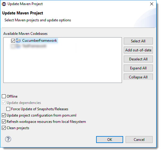 Note: Any changes in Maven POM, or any folder structure. Always update the project using maven to reflect the latest changes. As maven make sure to download all the dependencies and plugins at the update.