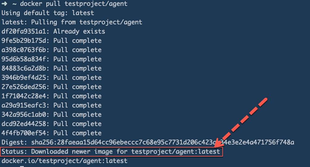 As highlighted, we can see that the latest image of the successful download of the TestProject's agent.